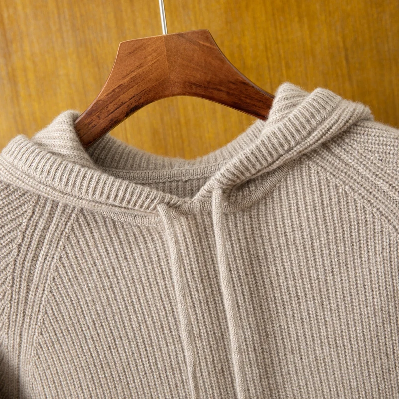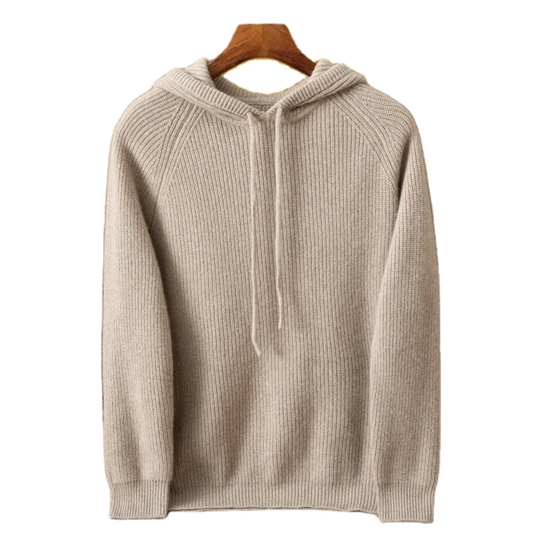 High Quality Men's 100% Cashmere Anti-Pilling Quick Dry Breathable Pullover Hoodie Sweater Custom Streetwear Winter